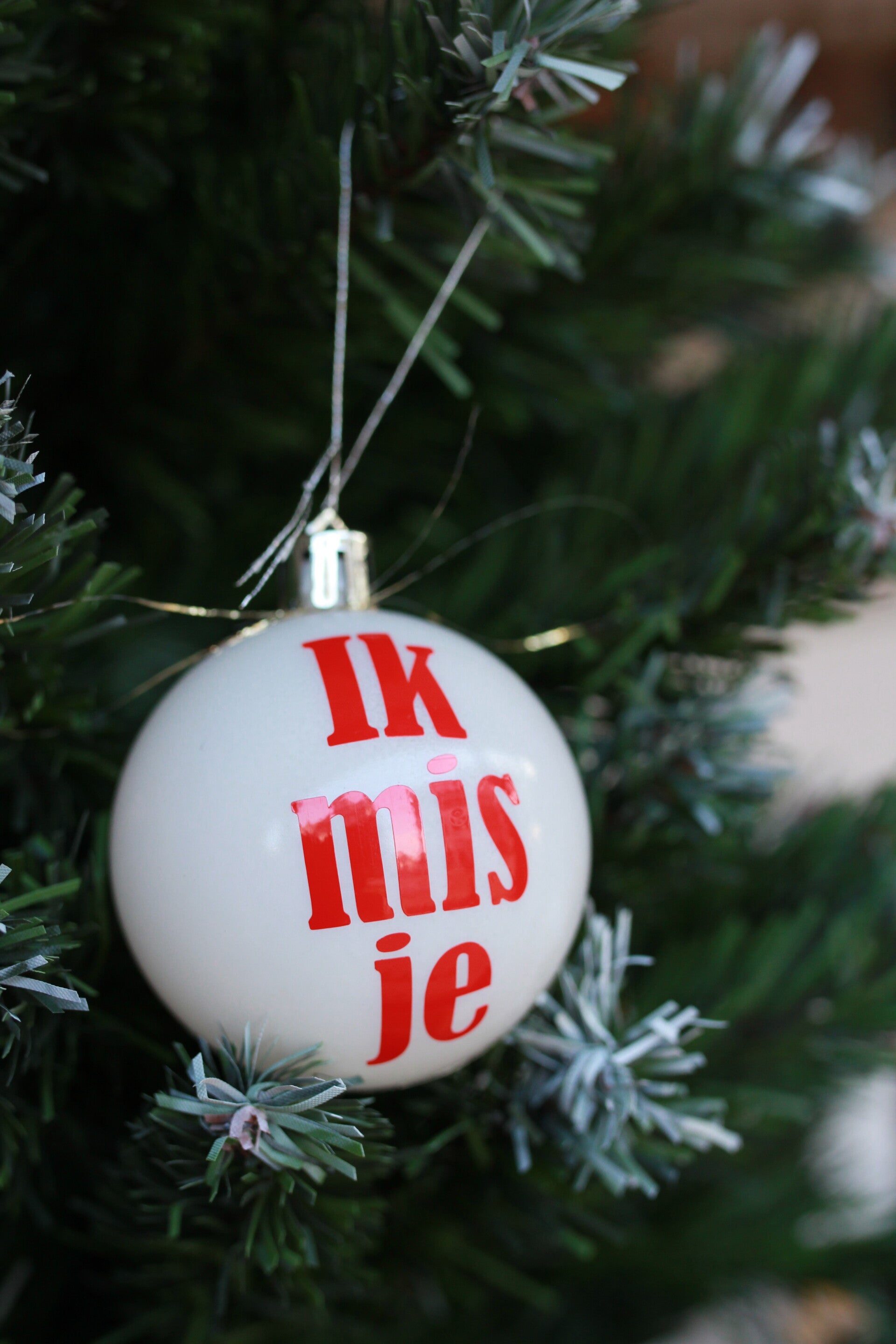 Witte kerstbal met tekstje